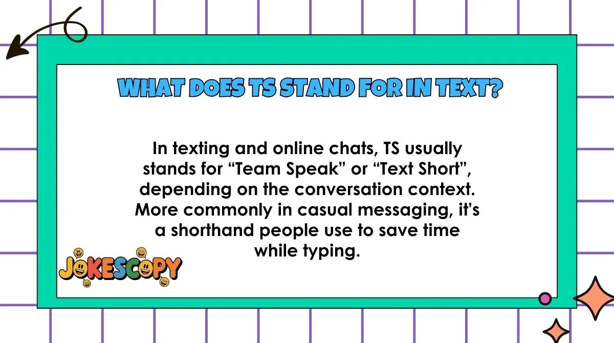 Next time you see TS in your chats, you’ll know whether it’s about Team Speak, Text Short, or something else entirely! 🌟