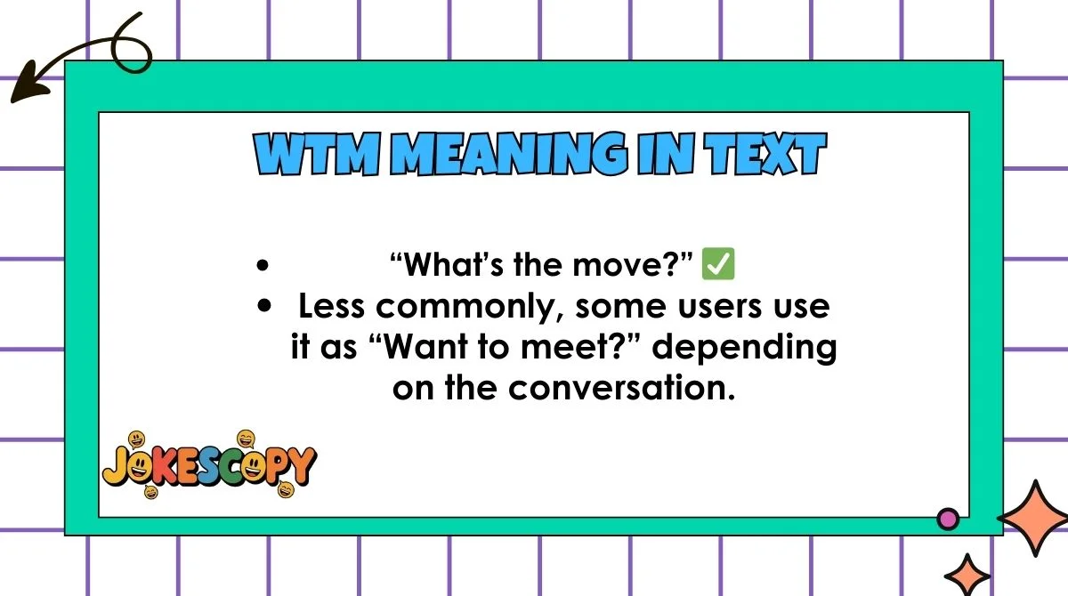 Next time you see WTM, you’ll know it’s just a casual way of asking “What’s the move?” — and you’ll be ready to respond with flair!